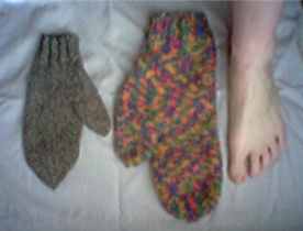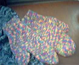 “Daddy’s Mitten” and stuck them both in a package. I’ll post a picture of that soon. The yarn is so very flash – all bright colors.)