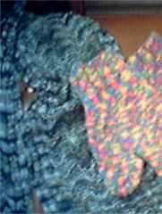 The mitten yarn is from the yarn riot. And, I traded some of it with Linda so I have slick red multi yarn! |